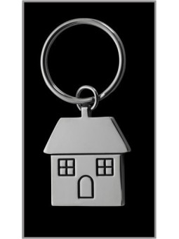 Porte-clés personnalisable en métal de la forme d'un maison, idéal pour les sociétés immobilières souhaitant communiquer sur leur agence. Minimum de commande pour le est de 200 pièces. Caractéristiques clés : Matière : Métal / Zinc Poids : 40 g Dimensions : 7,1 x 3,3 x 0,4 cm