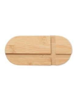 Support pour téléphone et tablette en bambou. Idéal pour consulter une vidéo. Le tarif "à partir de" est valable pour des quantités supérieures à 5000 pièces. Minimum de commande : 100 pièces
