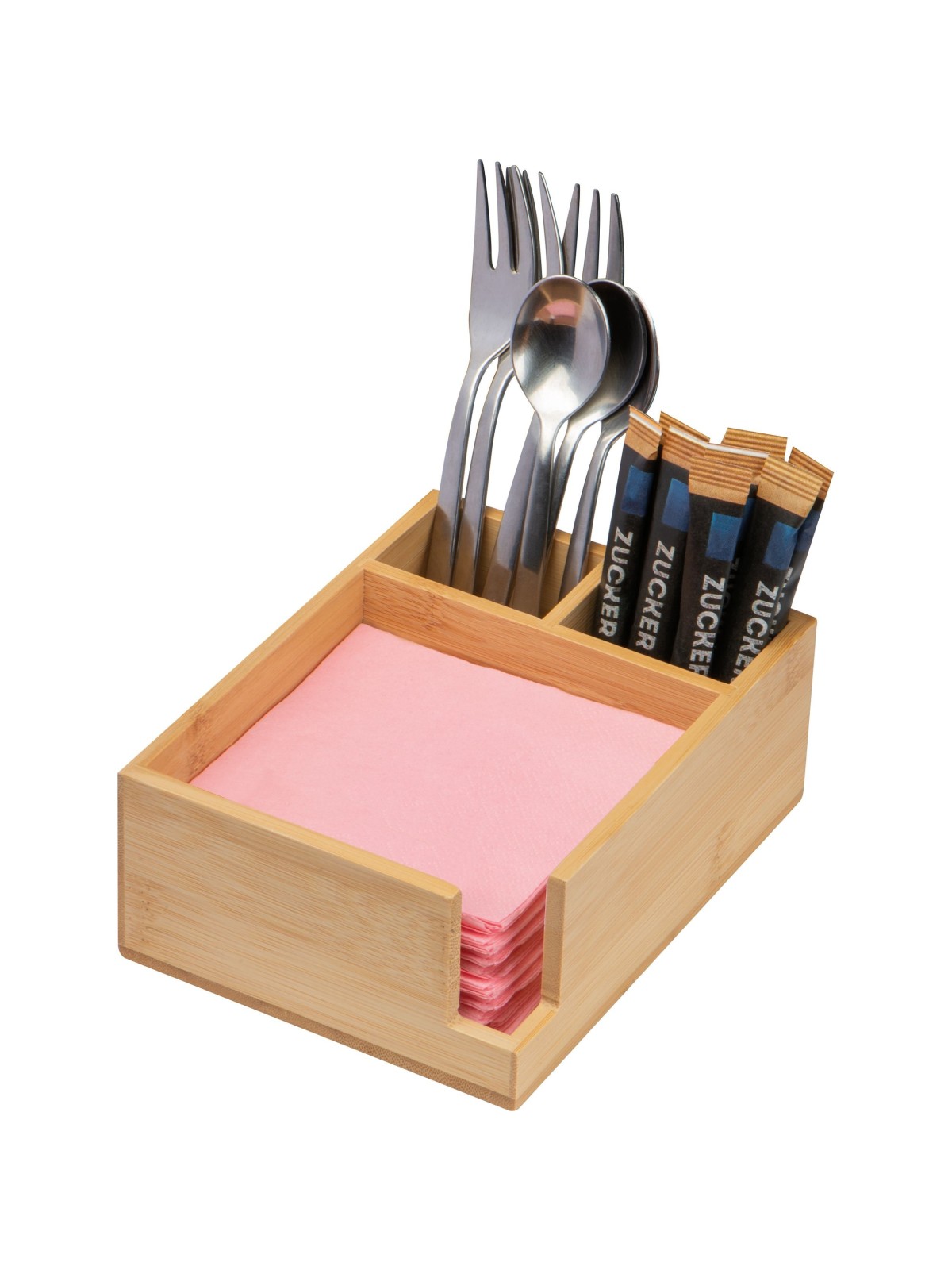 Le range-couverts publicitaire en bambou, contribuera à donner à votre table une apparence ordonnée, il vous permettra donc de maintenir les couverts bien rangés et propres !
