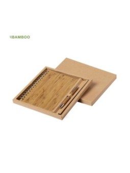 Carnet naturel publicitaire avec un stylo en bambou. Le tarif "à partir de" du carnet naturel publicitaire est valable pour des quantités supérieures à 5000 pièces. Le minimum de commande possible pour ce carnet est de 75 pièces. Caractéristiques clés : Matière : Bambou Dimensions : 18.8 x 13...