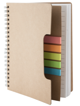 Bloc-notes écologique à spirales avec feuilles adhésives publicitaire à l'image de votre entreprise.  Le tarif "à partir de" du bloc-notes à spirales écologique est valable pour des quantités supérieures à 5000 pièces. Minimum de commande : 200 pièces. Caractéristiques clés : Dimensions :...