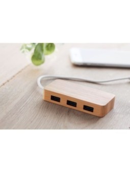 Hub usb personnalisé en bambou avec 3 ports USB 2.0. Le tarif "à partir de" est valable pour des quantités supérieures à 5000 pièces. Minimum de commande : 100 pièces