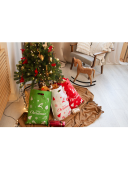Tote bag publicitaire de Noël personnalisé en non-tissé RPET recyclé ! Le tarif "à partir de" du tote bag publicitaire de Noël est valable pour des quantités supérieures à 1000 pièces. Le minimum de commande possible pour ce tote bag publicitaire de Noël est de 700 pièces. Caractéristiques clés...