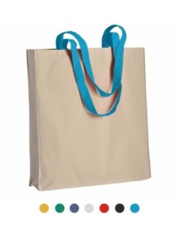 Sac coton soufflet et anses colorées publicitaire éco-friendly !  Le tarif "à partir de" de sac coton soufflet et anses colorées publicitaire est valable pour des quantités supérieures à 1000 pièces.  Le minimum de commande possible pour ce sac coton soufflet et anses colorées publicitaire est de...