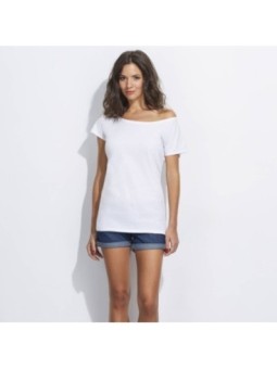 Les t shirts publicitaires Marylin pour femme sont ultra tendances et actuels grâce à leur large décolleté. Le tarif "à partir de" est valable pour des quantités supérieures à 5000 pièces. Minimum de commande : 50 pièces