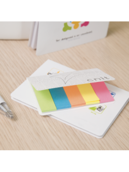 Mini bloc marque-page Made in France avec votre logo. Le tarif "à partir de" du marque-page est valable pour des quantités supérieures à 2500 pièces. Le minimum de commande possible pour ce mini bloc marque-page promotionnel est de 450 pièces. Caractéristiques clés : Matière : Carton Dimensions :...