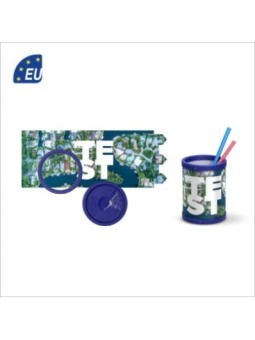 Pot à crayons publcitaire Made in Europe Le minimum de commande possible pour ces pots à crayons publicitaire est de 100 pièces. Caractéristiques clés :  Matière : Polypropylène Origine: Made in Europe Dimensions : 30x12x1cm Poids : 33g Couleur: noir/bleu