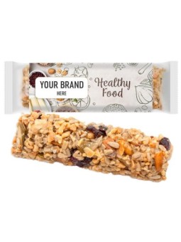 Barre de muesli BIO publicitaire avec deux parfums !  Le tarif "à partir de" de barre de muesli BIO personnalisable est valable pour des quantités supérieures à 1000 pièces.  Le minimum de commande possible pour cette barre de muesli BIO personnalisée est de 300 pièces. Caractéristiques clés :...