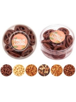 Collation publicitaire pour chaque occasion !  Le tarif "à partir de" de collation personnalisable est valable pour des quantités supérieures à 1000 pièces.  Le minimum de commande possible pour cette collation personnalisée est de 300 pièces. Caractéristiques clés : Saveurs : Bretzels salés au...
