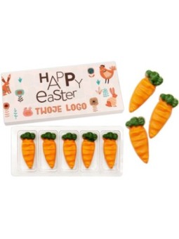 Carottes publicitaires en chocolat, idéales pour Pâques ! Le tarif "à partir de" des carottes personnalisables en chocolat est valable pour des quantités supérieures à 1000 pièces.  Le minimum de commande possible pour ces carottes promotionnelles en chocolat est de 250 pièces. Caractéristiques...