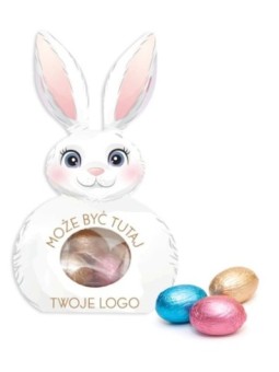 Lapin de Pâques publicitaire ! Le tarif "à partir de" est valable pour des quantités supérieures à 1000 pièces.  Minimum de commandes : 150 pièces Caractéristiques clés : Dimensions : 60 x 40 x 100 mm Poids : 32 g Durée de conservation : 6 mois
