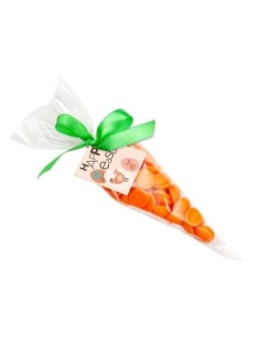 Pastilles de chocolats en forme de carotte , aromatisées à l'orange ! Le tarif "à partir de" est valable pour des quantités supérieures à 1000 pièces.  Caractéristiques clés : Dimensions : 150 x 250 mm Poids : 90/92 g Durée de conservation : 6 mois Taille de l'étiquette : 55 x 40 mm