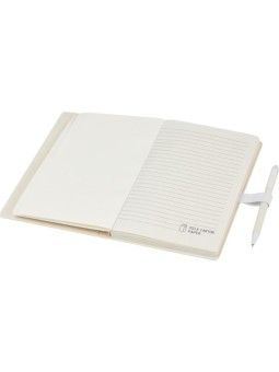 Ensemble carnet de notes recyclé publicitaire avec 80 pages lignées.   Le tarif "à partir de" de l'ensemble de carnet de notes recyclé publicitaire est valable pour des quantités supérieures à 5000 pièces.  Le minimum de commande possible pour ce carnet de notes est de 120 pièces....