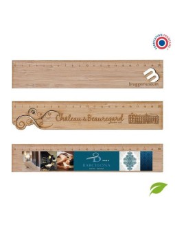 Règle en bambou publicitaire Made in France de 20 cm !  Le tarif "à partir de" de règle en bambou personnalisable Made in France est valable pour des quantités supérieures à 2500 pièces.  Le minimum de commande possible pour cette règle en bambou personnalisée Made in France est de 200 pièces....