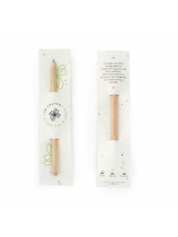 Marque-page et crayon de bois publicitaire Made in France en papier de graine. Le tarif "à partir de" du marque-page et crayon de bois personnalisé Made in France est valable pour des quantités supérieures à 1000 pièces. Le minimum de commande possible pour ce marque-page et crayon de bois...