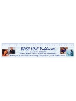 Règle publicitaire souple avec marquage en quadri numérique et d'une dimension de 30 cm. Le tarif comprends l'impression quadri au recto ! Minimum de commande : 200 pièces Caractéristiques clés : Matière : PVC Dimensions : 31 x 6 cm Epaisseur : 0,5 mm
