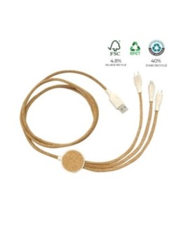 Cable usb en Liège 3-en-1 publicitaire Le minimum de commande possible pour ces câbles USB en Liège 3-en-1 publicitaire est de 100 pièces. Caractéristiques clés : Matière : Liège Universel compatible avec tout les téléphones  Dimensions : 120 cm Poids : 40g