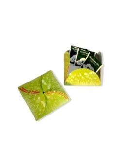 Carte de voeux originale livrée avec un sachet de graines ou un tapis de semis. Le tarif "à partir de" est valable pour des quantités supérieures à 5000 pièces. Minimum de commande : 500 pièces
