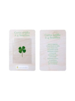 Cette carte personnalisé contient un trèfle à 4 feuilles séché.  Le tarif "à partir de" est valable pour des quantités supérieures à 5000 pièces. Minimum de commande : 500 pièces