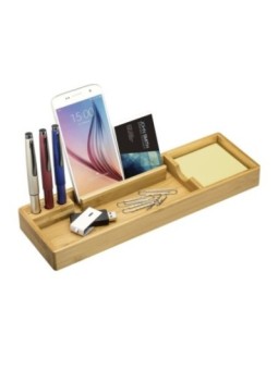 Organisateur de bureau publicitaire avec notes repositionnables tout en bois. Design élégant et naturel afin d'organiser vos fournitures. Minimum de commande : 50 pièces