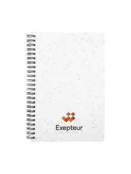 Carnet de blé publicitaire avec un reliure à spirales. Le tarif "à partir de" du carnet de blé publicitaire est valable pour des quantités supérieures à 5000 pièces. Le minimum de commande possible pour ce carnet est de 200 pièces. Caractéristiques clés : Matière : Paille de blé Dimensions :...