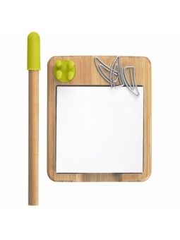 Set papeterie publicitaire comprenant un stylo, un porte-bloc aimanté avec papier et 6 trombones. Produit bio utlise au travail comme à la maison. Minimum de commande : 100 pièces