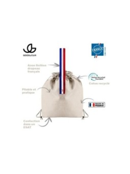 Sac pochon publicitaire Made in France en RPET. Le tarif "à partir de" du sac pochon personnalisé Made in France est valable pour des quantités supérieures à 1000 pièces. Le minimum de commande possible pour ce sac pochon promotionnel Made in France est de 150 pièces. Caractéristiques clés :...