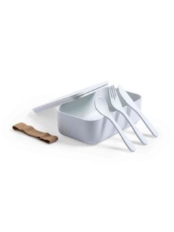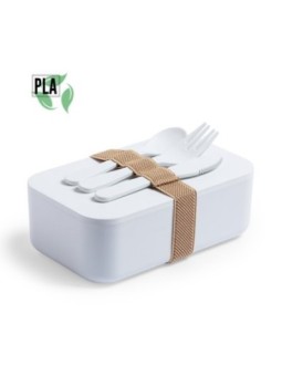 Gamelle publicitaire personnalisable de la gamme éco-friendly, en PLA 100% compostable, avec élastique incluant fourchette, cuillère et couteau. Le tarif "à partir de" de la gamelle publicitaire est valable pour des quantités supérieures à 1000 pièces. Le minimum de commande possible pour cette...