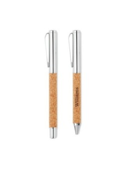 Ensemble de stylos personnalisable en métal avec stylo à bille et roller avec corps en liège ! Le tarif "à partir de" est valable pour des quantités supérieures à 5000 pièces. Minimum de commande : 50 pièces  Caractéristiques clés : Dimensions : 17,5 x 5,5 x 2,5 cm Matière : Métal Poids : 0,124 kg