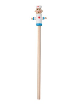 Crayon à papier publicitaire en bois avec une figurine "docteur" ! Le tarif "à partir de" est valable pour des quantités supérieures à 5000 pièces. Minimum de commande : 500 pièces  Caractéristiques clés : Poids : 14 g Matière : Bois Dimension : ø7 × 215 mm
