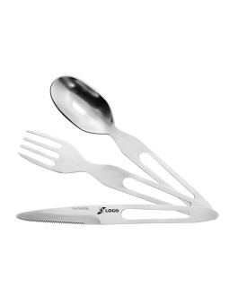 Set de 3 couverts publicitaires : cuillère, fourchette et couteau lame micro-dentée Le tarif "à partir de" est valable pour des quantités supérieures à 5000 pièces. Minimum de commande : 60 pièces.