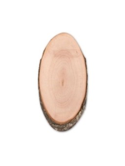 Planche à découper publicitaire de forme ovale, en bois avec écorce autour. Le tarif "à partir de" est valable pour des quantités supérieures à 5000 pièces. Minimum de commande : 100 pièces