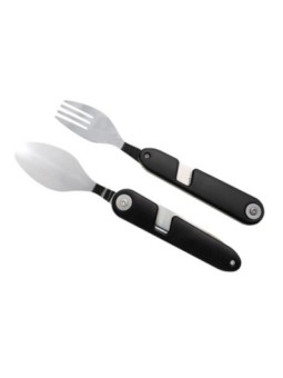 Fourchette-cuillère-couteau publicitaire, l'objet publicitaire 3 en 1 écologique et Made In Europe ! Le minimum de commande pour la fourchette personnalisée 3 en 1 est de 500 pièces. Caractéristiques clés : Dimensions : 17,20 x 3,70 x 1 cm Poids : 10 g Matière : Plastique Green Made In Europe