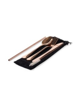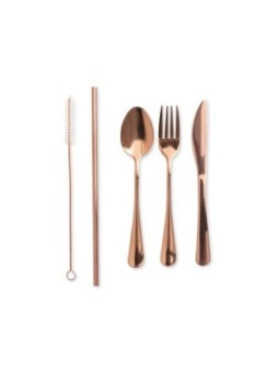 Set de couverts publicitaire avec finition en cuivre galvanisé. Le tarif "à partir de" du set de couverts publicitaire est valable pour des quantités supérieures à 5000 pièces. Le minimum de commandes possible pour cet ensemble est de 150 pièces. Caractéristiques clés : Matière : Acier...