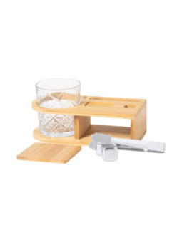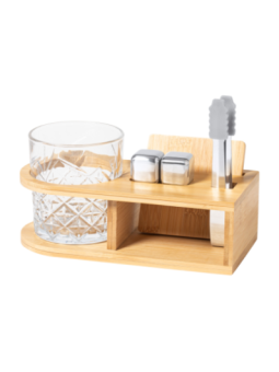 Set à whisky et support de bureau publicitaire écologique en bambou. Le tarif "à partir de" est valable pour des quantités supérieures à 5000 pièces. Minimum de commande : 25 pièces