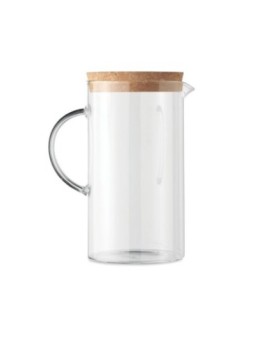 Carafe personnalisable à eau ou à jus en verre borosilicate avec couvercle en liège. Présentez des jus de fruits frais, de la limonade, de l'eau ou d'autres boissons dans cette carafe en verre ! Le tarif "à partir de" est valable pour des quantités supérieures à 50000 pièces. Minimum de...
