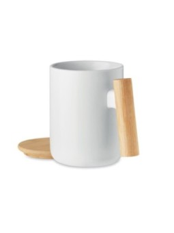 Tasse publicitaire en céramique avec couvercle en bois. Cette tasse possède un design novateur, elle convient pour le café et le thé. Présenté dans un coffret Avenue. Le tarif "à partir de" est valable pour des quantités supérieures à 5000 pièces. Minimum de commande : 50 pièces