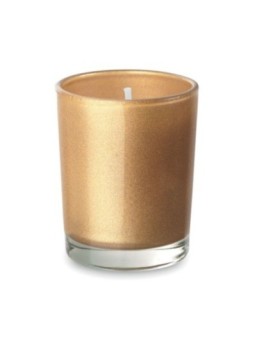 Bougie parfumée personnalisée dans un verre coloré. Le tarif "à partir de" est valable pour des quantités supérieures à 5000 pièces. Minimum de commande : 500 pièces.