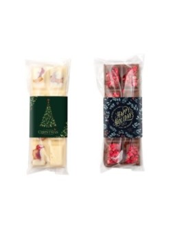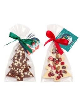 Sapin de Noël en chocolat publicitaire au chocolat blanc aux canneberges lyophilisées et pistaches torréfiées ; chocolat au lait saupoudré d'étoiles de sucre ! Le tarif "à partir de" du sapin de Noël en chocolat personnalisable est valable pour des quantités supérieurs à 5000 pièces. Le minimum...