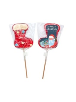 Sucette chaussette de Noël publicitaire décorée de caramel blanc et de sucre saupoudré ! Le tarif "à partir de" de la sucette chaussette de Noël publicitaire est valable pour des quantités supérieurs à 5000 pièces. Le minimum de commande possible de votre sucette chaussette de Noël publicitaire...
