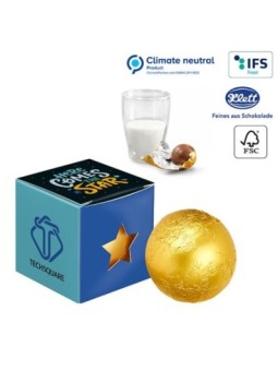 Bombe de chocolat chaud personnalisable au lait fourrée de guimauves séchées (6%) ! Le tarif "à partir de" du la bombe de chocolat chaud publicitaire est valable pour des quantités supérieurs à 1000 pièces. Le minimum de commande possible pour cette bombe de chocolat chaud promotionnelle est de...