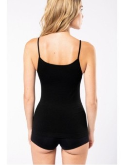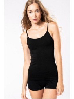 Débardeur écoresponsable personnalisable pour femme sans couture avec des bretelles. Le tarif "à partir de" est valable pour des quantités supérieures à 5000 pièces. Minimum de commande : 100 pièces.