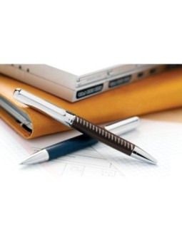 Stylo bille publicitaire en métal avec finitions argent chromé et cuir livré dans boîte tube aluminium ! Le tarif "à partir de" est valable pour des quantités supérieures à 5000 pièces. Minimum de commande : 20 pièces Caractéristiques clés : Dimensions : Ø2,8 x16 cm Poids : 0.059 kg Matière :...