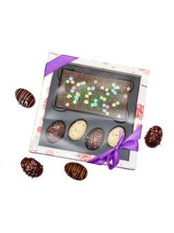 Kit de Pâques à offrir avec votre logo ! Le tarif "à partir de" est valable pour des quantités supérieures à 1000 pièces. Le minimum de commande possible pour les chocolats de Pâques est de 250 pièces. Caractéristiques clés : Dimensions : 184 x 184 x 18 mm Poids : 158 g Conservation : 3 mois...
