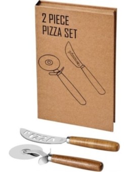 Ensemble de couteaux et coupe pizza personnalisés en bois et en acier inoxydable qui vous permet de couper facilement votre pizza en parts. Présenté dans un coffret cadeau Avenue.  Le tarif "à partir de" est valable pour des quantités supérieures à 5000 pièces.   Commande minimum : 25 pièces.