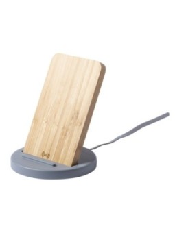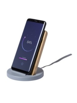 Support mobile de bureau personnalisé en ciment calcaire et bambou avec chargeur sans fil intégré. Le tarif "à partir de" est valable pour des quantités supérieures à 5000 pièces. Minimum de commande : 25 pièces