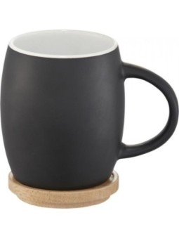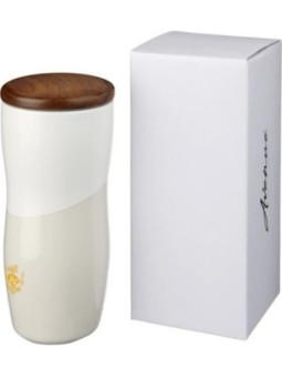 Mug en céramique 400 ml Tasse en céramique de 400 ml avec une finition mate, et un couvercle en bois naturel qui sert aussi de sous-tasse. Choisissez entre une impression couleur ou un marquage laser qui resiste au lave-vaisselle. Le tarif " à partir de " est valable pour les quantités...
