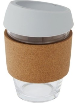 Gobelet de 360 ml en verre borosilicate avec grip en liège et couvercle en silicone. Le tarif "à partir de" est valable pour des quantités supérieures à 5000 pièces. Minimum de commande : 100 pièces