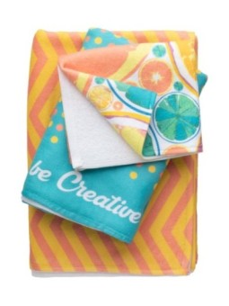 Serviette publicitaire en coton avec impression en sublimation sur une face. Le tarif "à partir de" est valable pour des quantités supérieures à 5000 pièces. Minimum de commande : 200 pièces