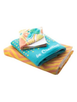 Serviette 100% coton avec impression sur une face. Made in Europe. Le tarif "à partir de" est valable pour des quantités supérieures à 5000 pièces. Minimum de commande : 100 pièces